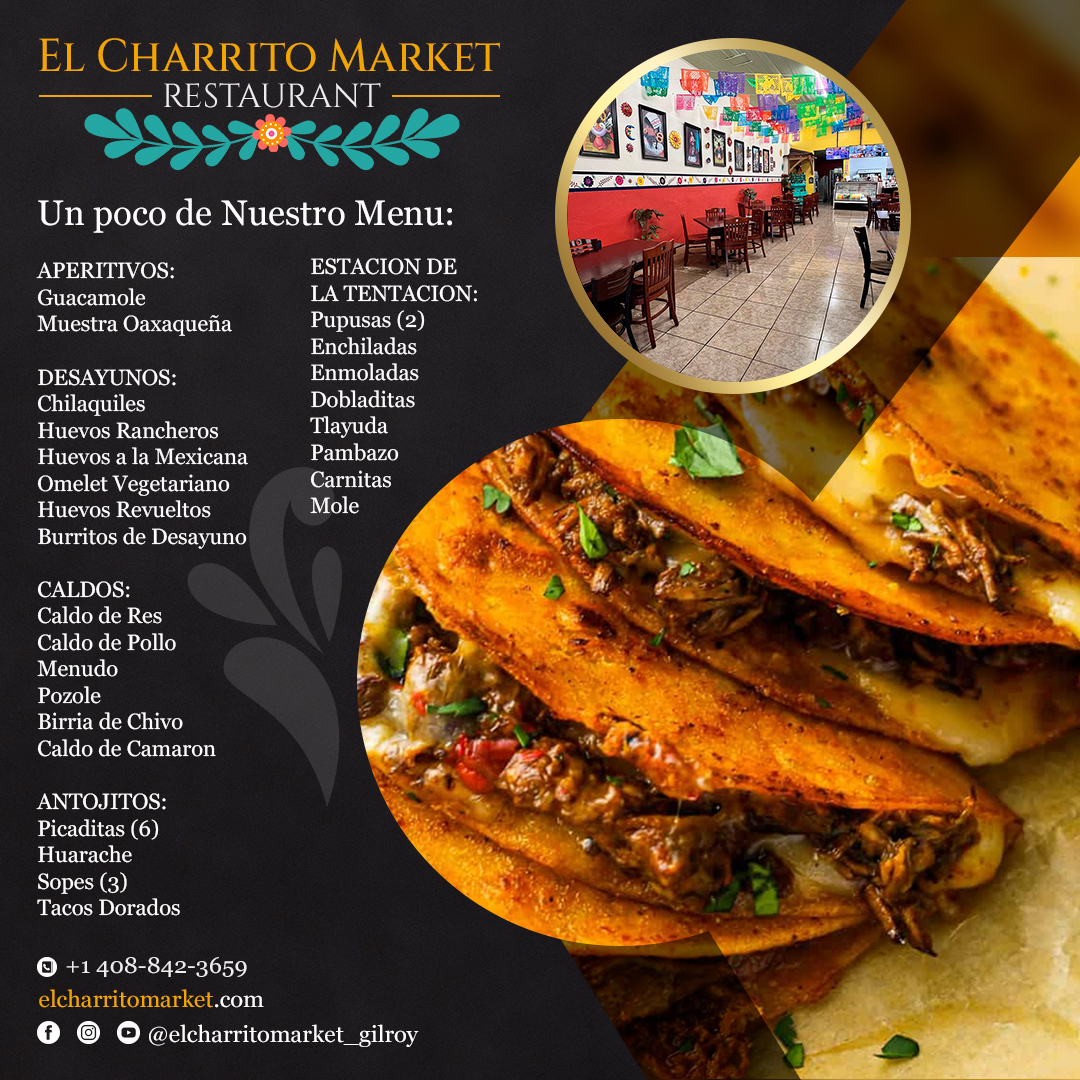 Gracias por permitirnos ser parte de tus celebraciones, de tus almuerzos rápidos y de tus cenas familiares. Si aún no nos conoces, ¿qué estás esperando? Pásate por Gilroy, visítanos en El Charrito y déjanos consentir tu paladar. ¡Te prometemos que volverás por más!